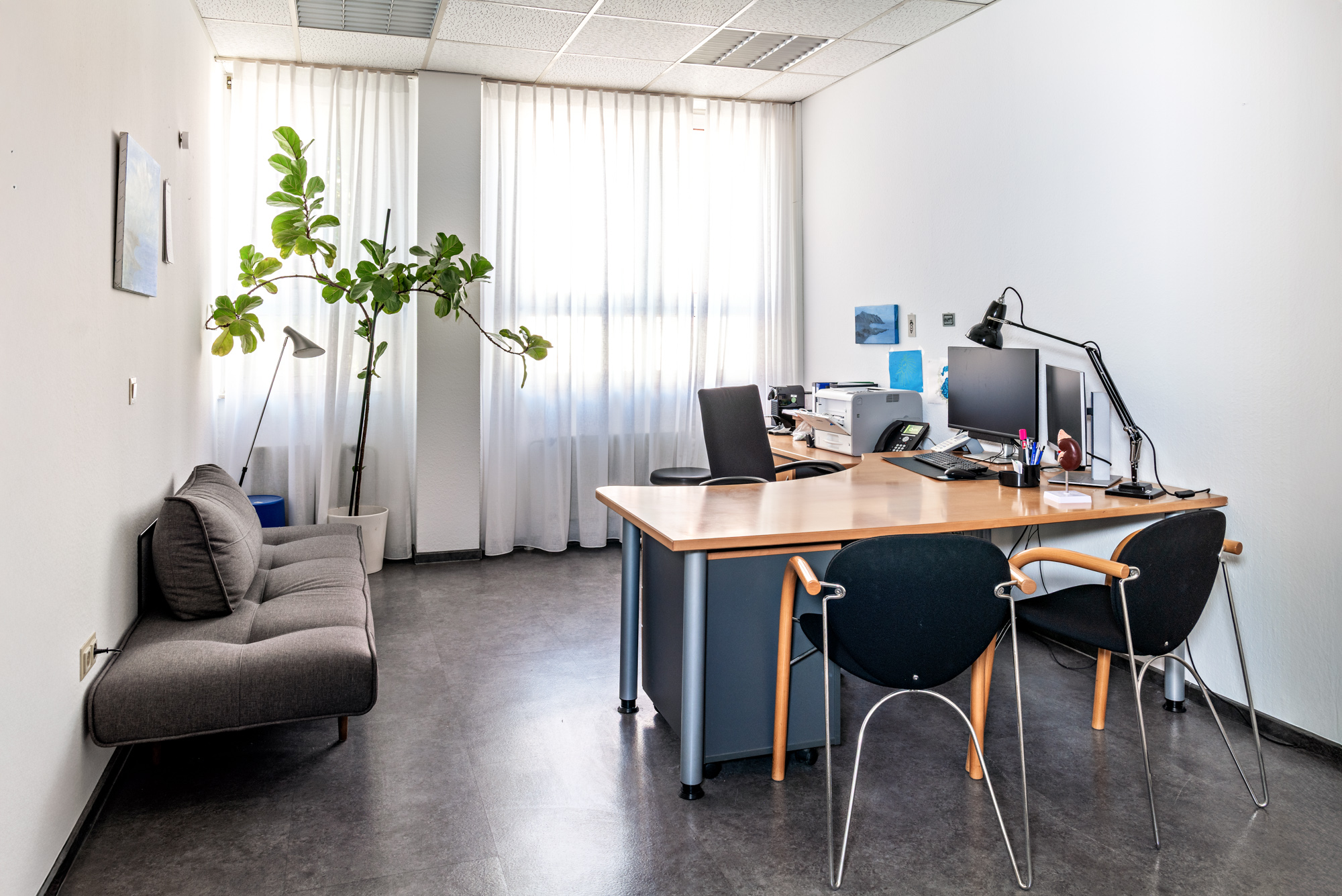 Die Räumlichkeiten unserer nephrologischen Praxis sind großzügig und freundlich gestaltet. Helle Warte- und Aufenthaltsbereiche sorgen für eine angenehme Atmosphäre, während die Untersuchungs- und Behandlungszimmer mit neuester medizinischer Technik ausgestattet sind. Unser Raumkonzept gewährleistet sowohl Diskretion als auch kurze Wege, sodass Untersuchungen und Therapien effizient und in einer vertrauensvollen Umgebung durchgeführt werden können.